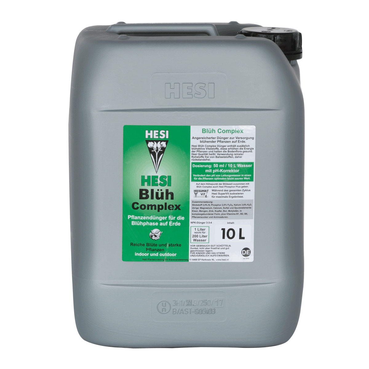 HESI Blüh Complex ist ein hochwertiger und für die Versorgung blühender Pflanzen optimierter und angereicherter Dünger. Blüh Complex enthält zusätzliche blühaktive Vitalstoffe, diese erhöhen die Energie der Pflanzen und halten die Boden- und Wurzelfauna gesund. HESI Blüh Complex enthält zusätzlich einen pH Korrektor der die Düngerlösung auf einen für die Pflanzen optimalen, leicht sauren pH Wert korrigiert.